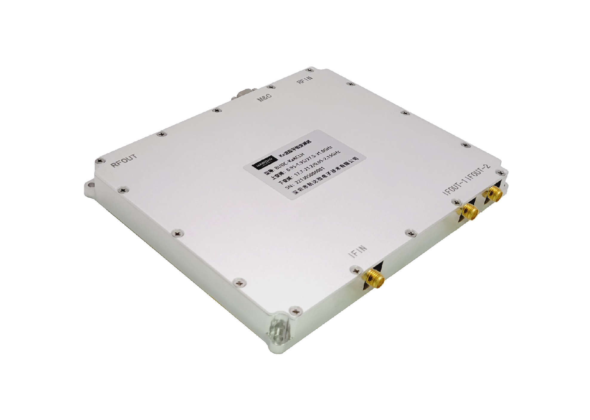 航達微電子BUDC-KaKCLH是Ka-L上/下變頻器,該產品工作頻率覆蓋下行頻段的17.7-21.2GHz以及上行頻段的27.5-31GHz。產品厚度僅15mm,超薄的結構設計,特別適合像有源相控陣天線(AESA)等對模塊尺寸有嚴格要求的產品。